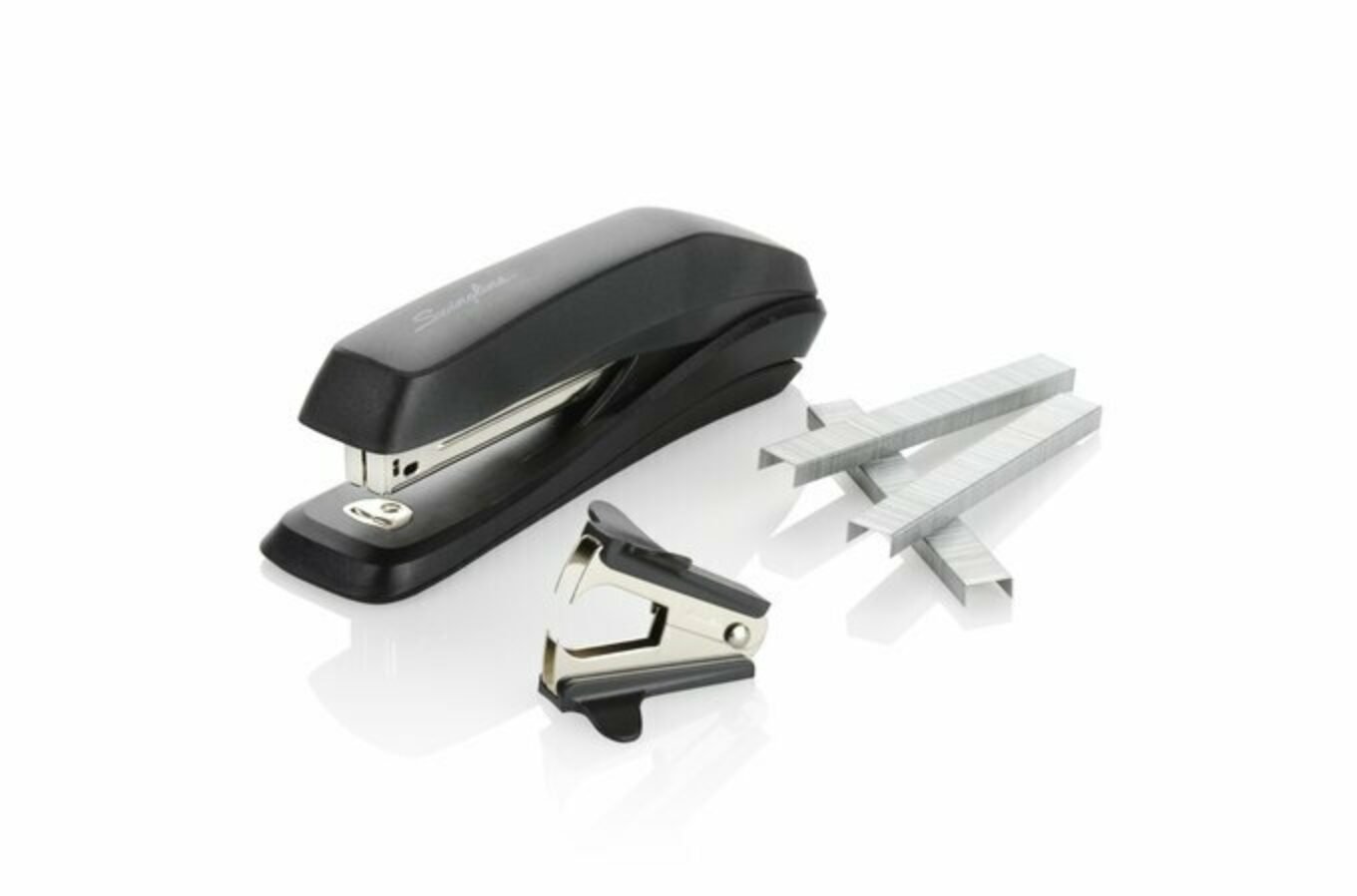 Everything you need for any room you’re in, the 545 Standard Stapler Value Pack is essential for the Nomadic Office. The Stapler Value Pack includes the lightweight yet reliable 545 Stapler in brilliant black, a box of Swingline Premium S.F.4 staples, and easy-to-use staple remover.